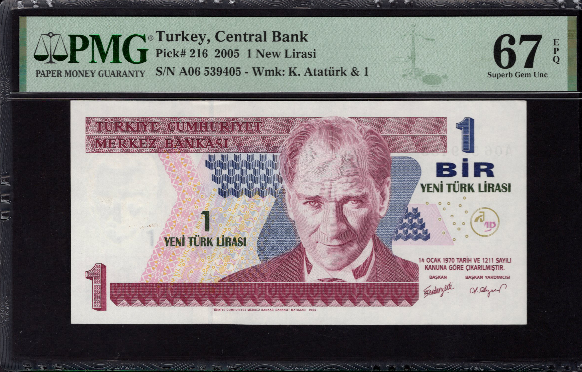Turkey - 1 New Lira 2005 - Pick # 216 - PMG 67 EPQ