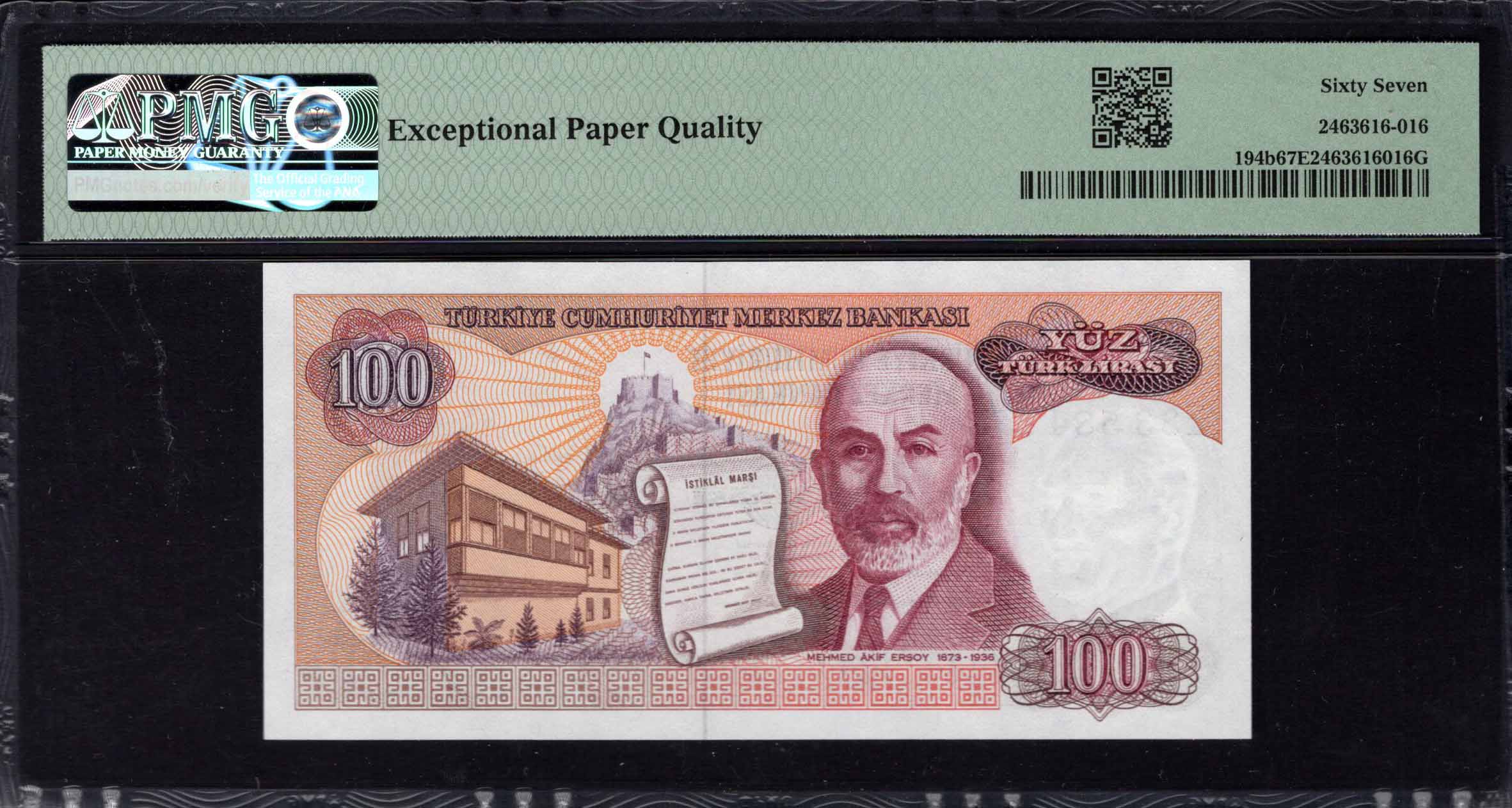 Het 100 Lira bankbiljet van Turkije, uitgegeven in 1970, heeft intrigerende ontwerpen en historische betekenis. Dit specifieke bankbiljet toont een portret van Mustafa Kemal Atatürk, de grondlegger van de Republiek Turkije, wat de historische narratief van het land weerspiegelt. Het kleurenpalet bevat tinten rood en paars, die visueel opvallend zijn en een artistieke flair bieden. Beveiligingskenmerken zoals watermerken en microtekst zijn essentieel om vervalsing tegen te gaan, wat het geavanceerde ontwerp van het bankbiljet toont. Dit bankbiljet belichaamt zowel kunst als veiligheidsmaatregelen, waardoor het een waardevol specimen is voor verzamelaars en historici.