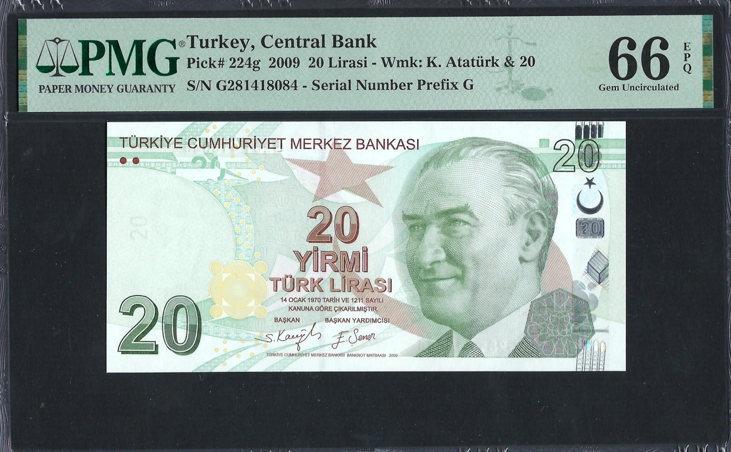 Het 20 Lira bankbiljet van Turkije, uitgegeven in 2009, toont een mix van modern design en historische betekenis. De voorzijde presenteert een portret van Mustafa Kemal Atatürk, de oprichter van de Turkse Republiek, wat nationale trots symboliseert. De ingewikkelde achtergrond bevat groene en rode tinten, samen met motieven die een gevoel van natuur en vooruitgang oproepen. Beveiligingselementen zoals een watermerk en microprint verhogen de authenticiteit. De achterzijde vormt een aanvulling op de voorzijde met verschillende geometrische patronen en symbolen die het Turkse erfgoed vertegenwoordigen.