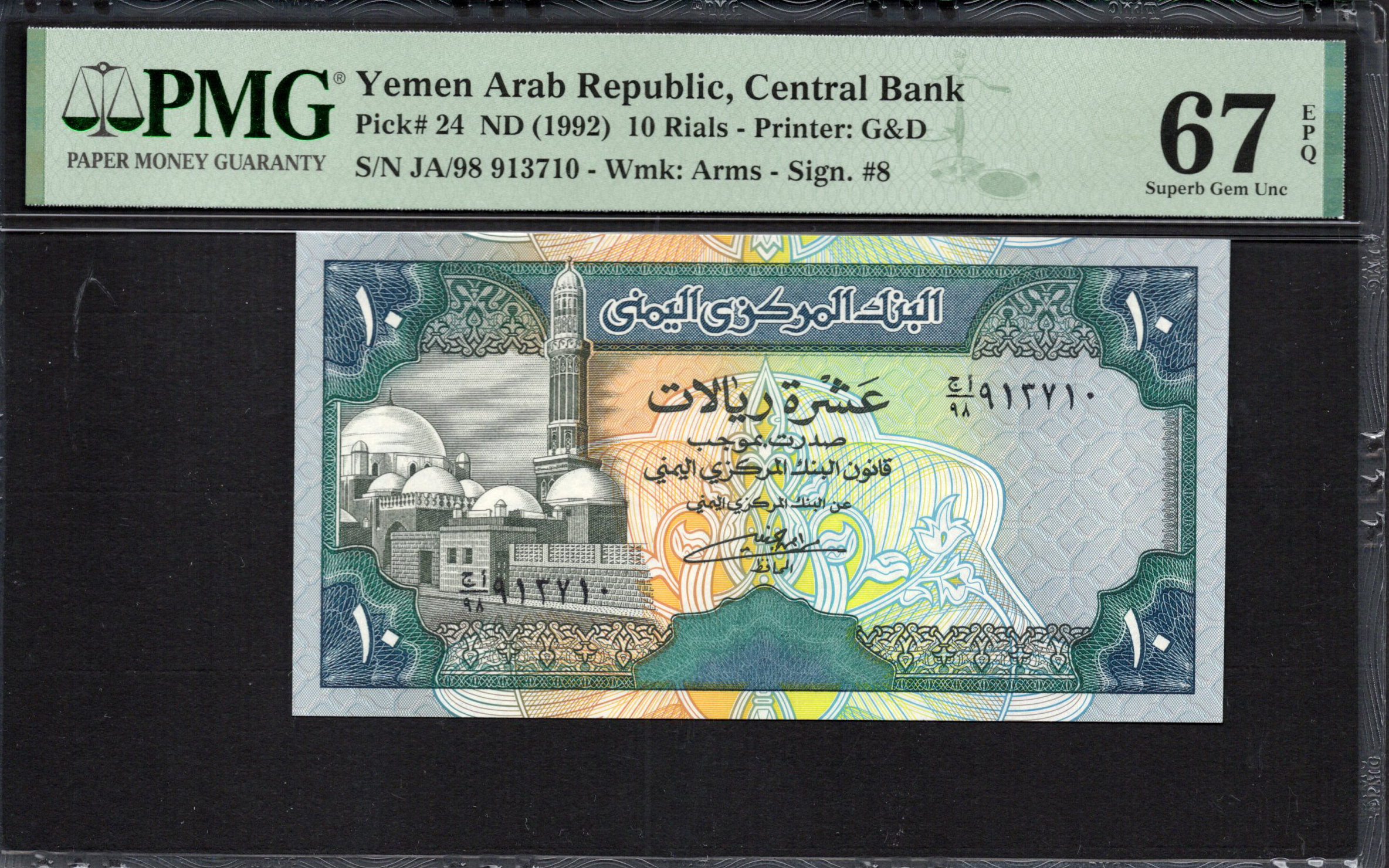 Yemen - 10 Rials 1992 - Pick # 24 - PMG 67 EPQ