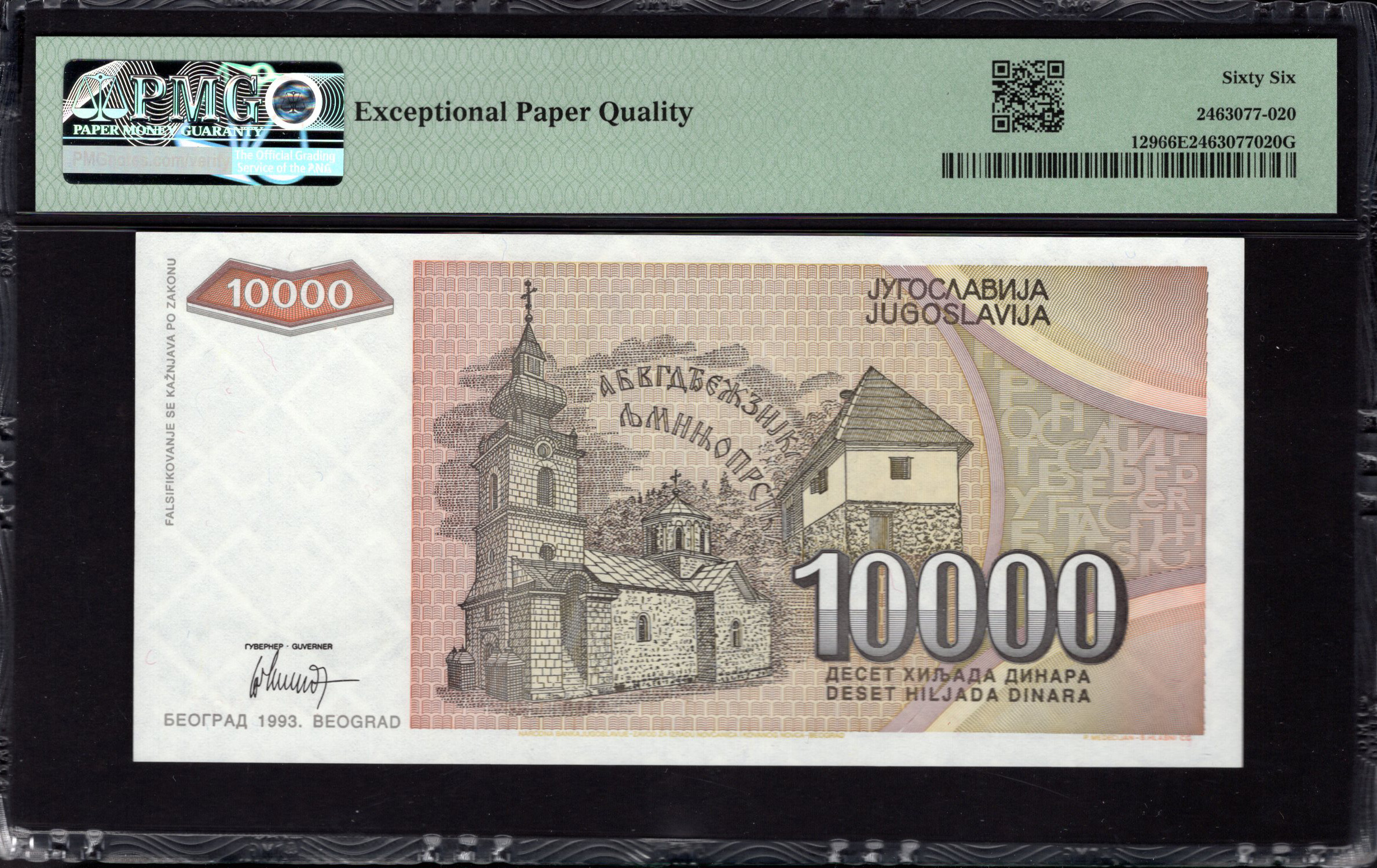 Deze analyse richt zich op het Joegoslavische bankbiljet van 10.000 dinar, uitgegeven in 1993. Het bankbiljet heeft onderscheidende visuele kenmerken en veiligheidsvoorzieningen die de historische en culturele betekenis ervan weerspiegelen. De voorzijde toont een historische figuur, verfraaid met ingewikkelde details en levendige kleuren, terwijl de achterzijde verschillende ornamentale patronen benadrukt en zo zijn uniekheid waarborgt. Veiligheidskenmerken zoals watermerken en microtekst zijn cruciaal om vervalsing te voorkomen, wat dit bankbiljet een combinatie van artistieke en functionele attributen geeft.