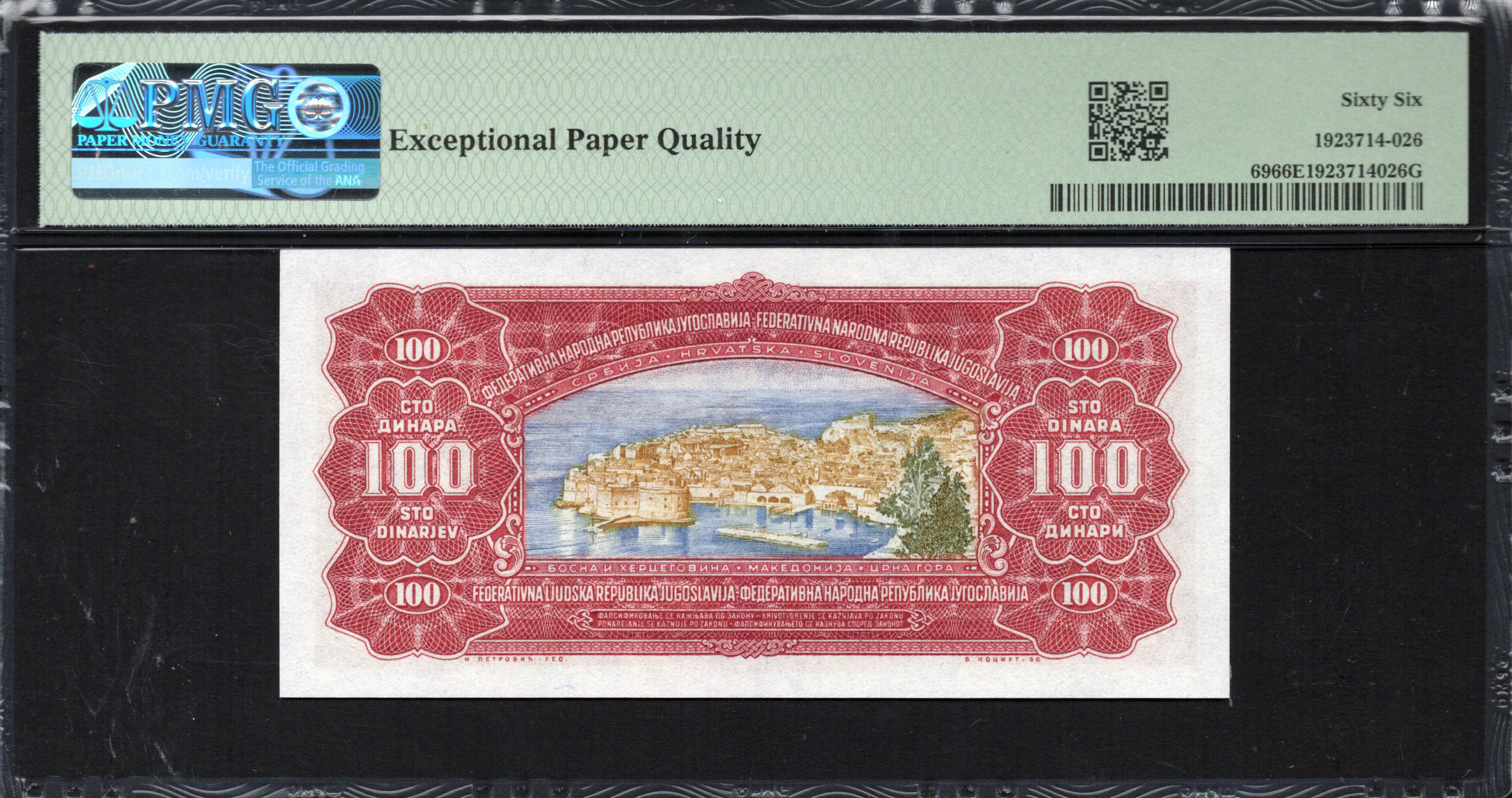 Yugoslavia - 100 Dinara 1955 - Pick # 69 - PMG 66 EPQ