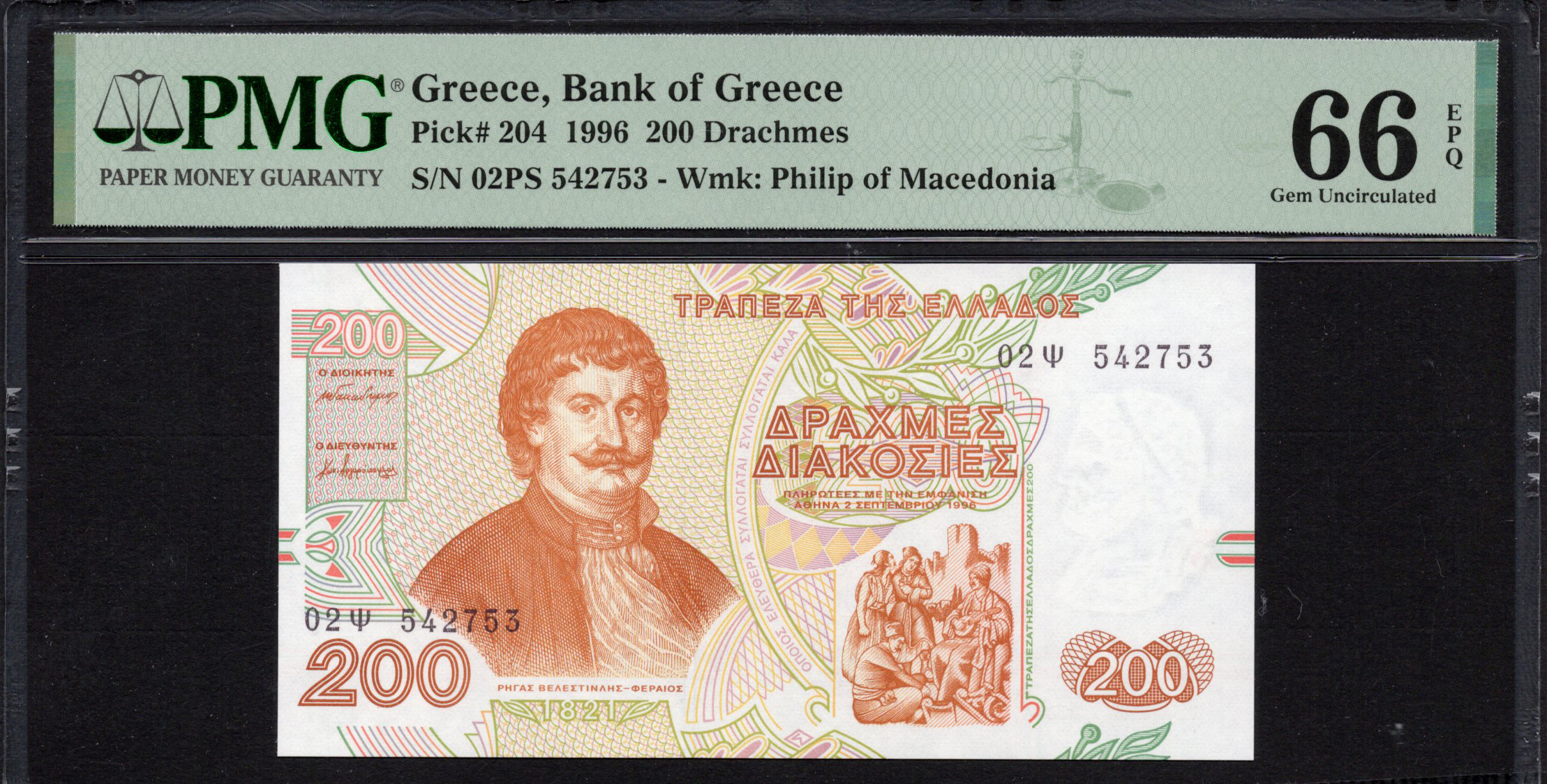 Greece - 200 Drachmes 1996 - Pick # 204 - PMG 66 EPQ