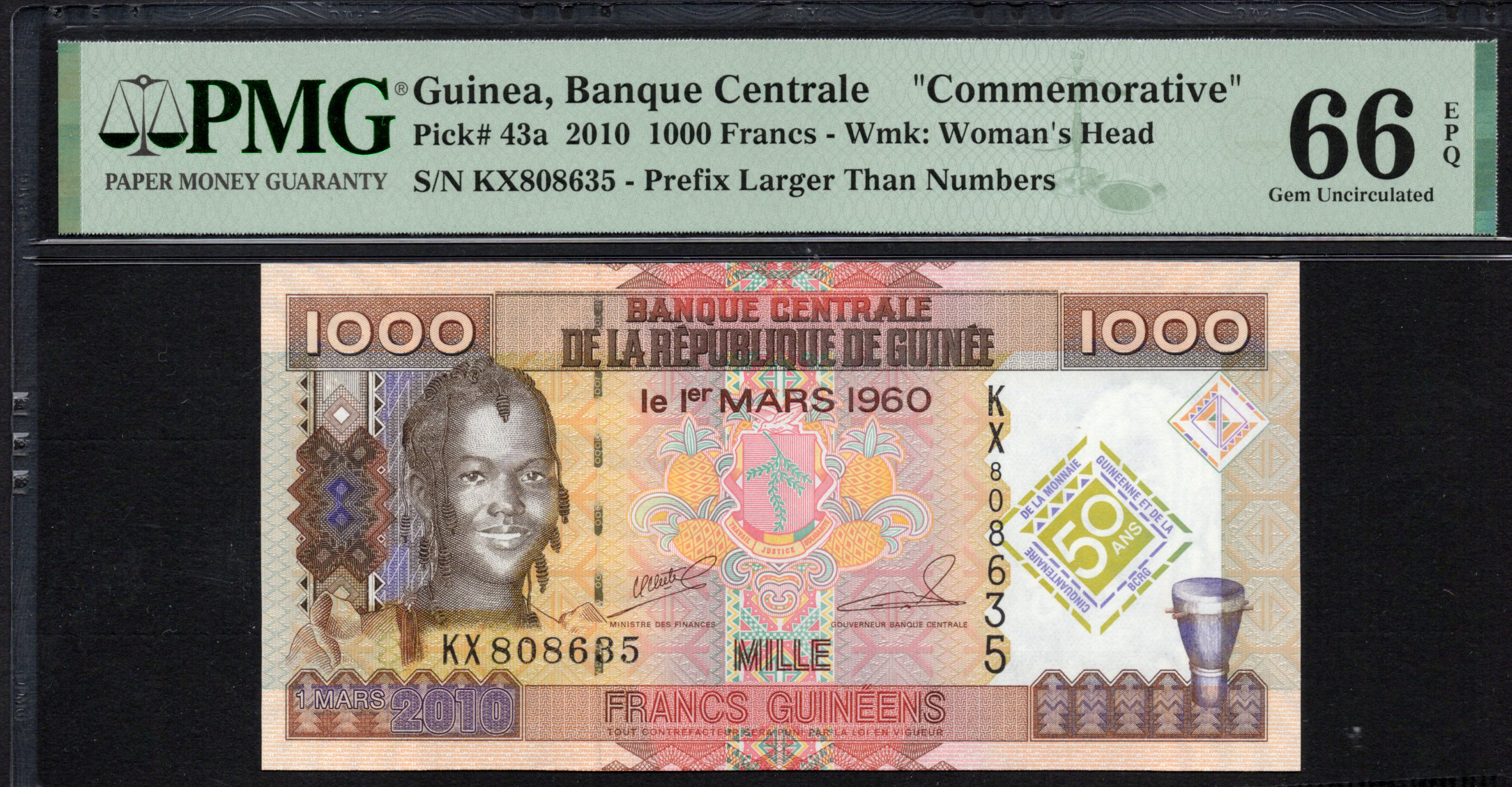 Guinea - 1.000 Francs 2010 - Pick # 43a - PMG 66 EPQ