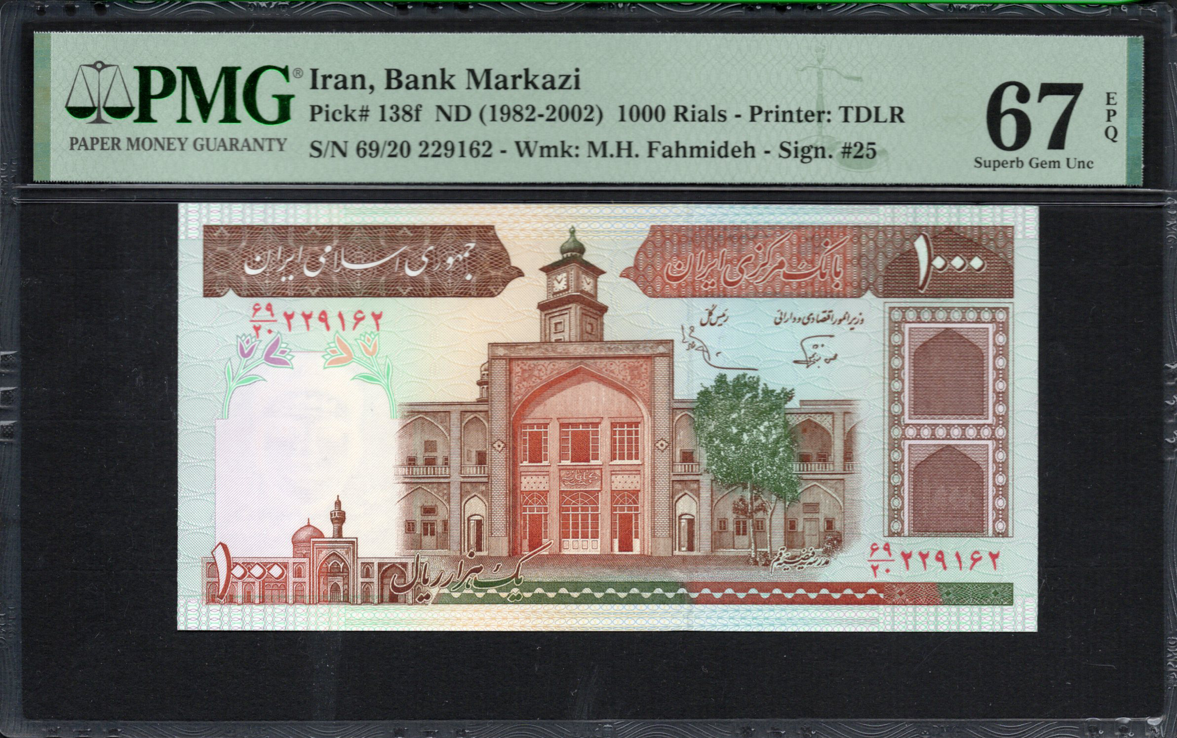 Iran - 1.000 Rials 1982 - Pick # 138f - PMG 67 EPQ