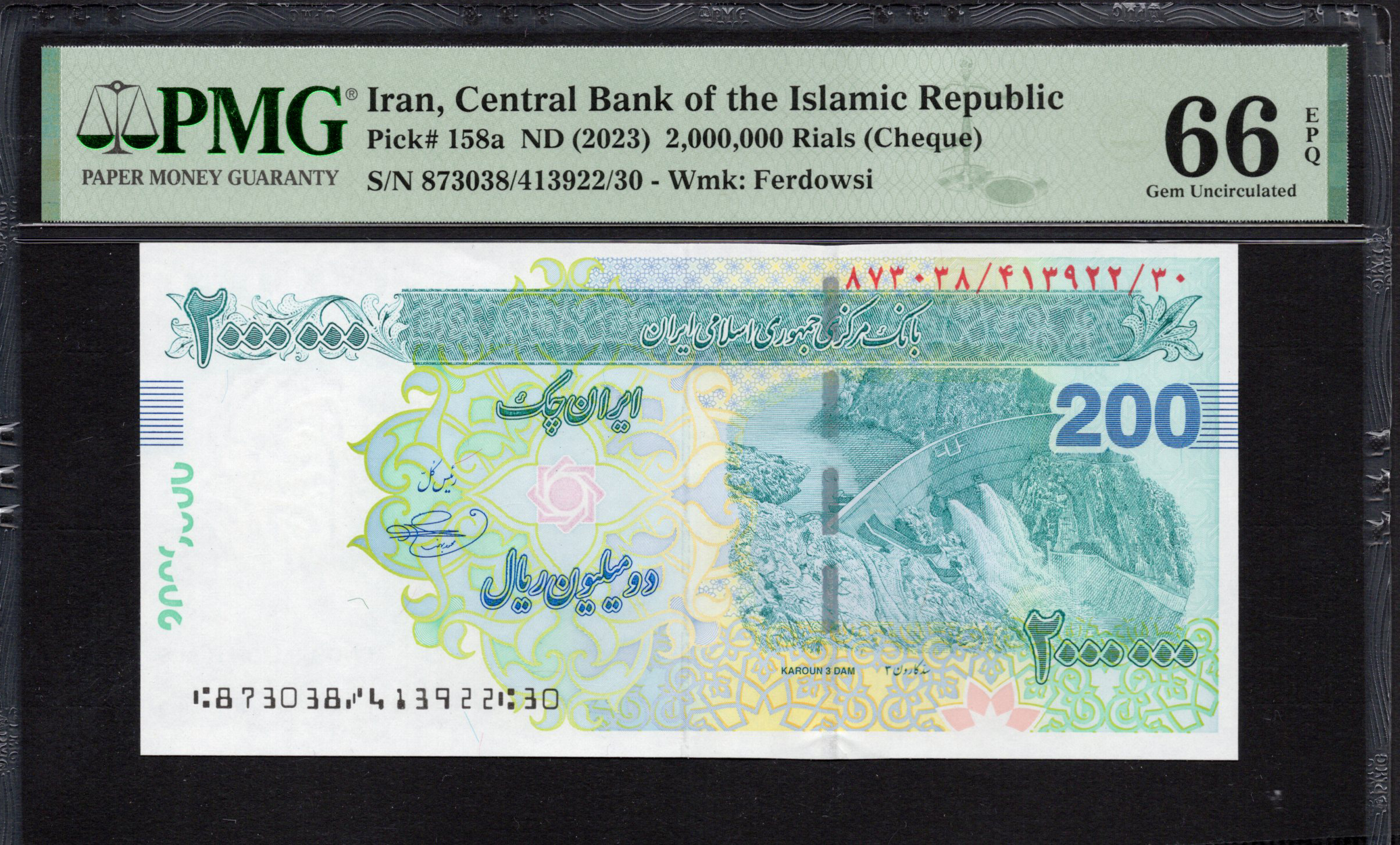 Iran - 2.000.000 Rials 2023 - Pick # 158a - PMG 66 EPQ