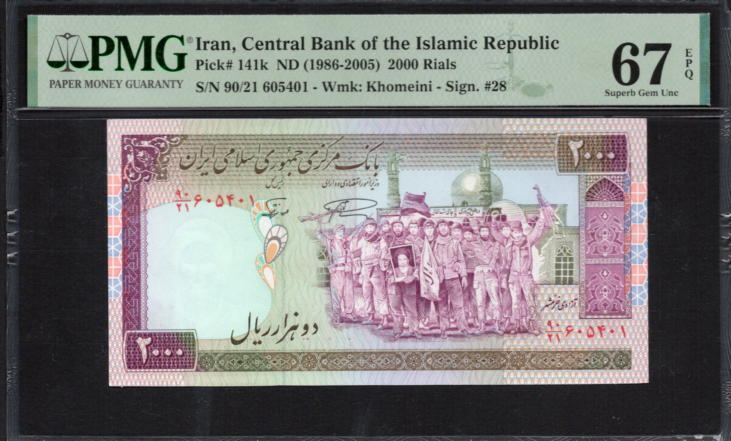 Iran - 2.000 Rials 1986 - Pick # 141k - PMG 67 EPQ