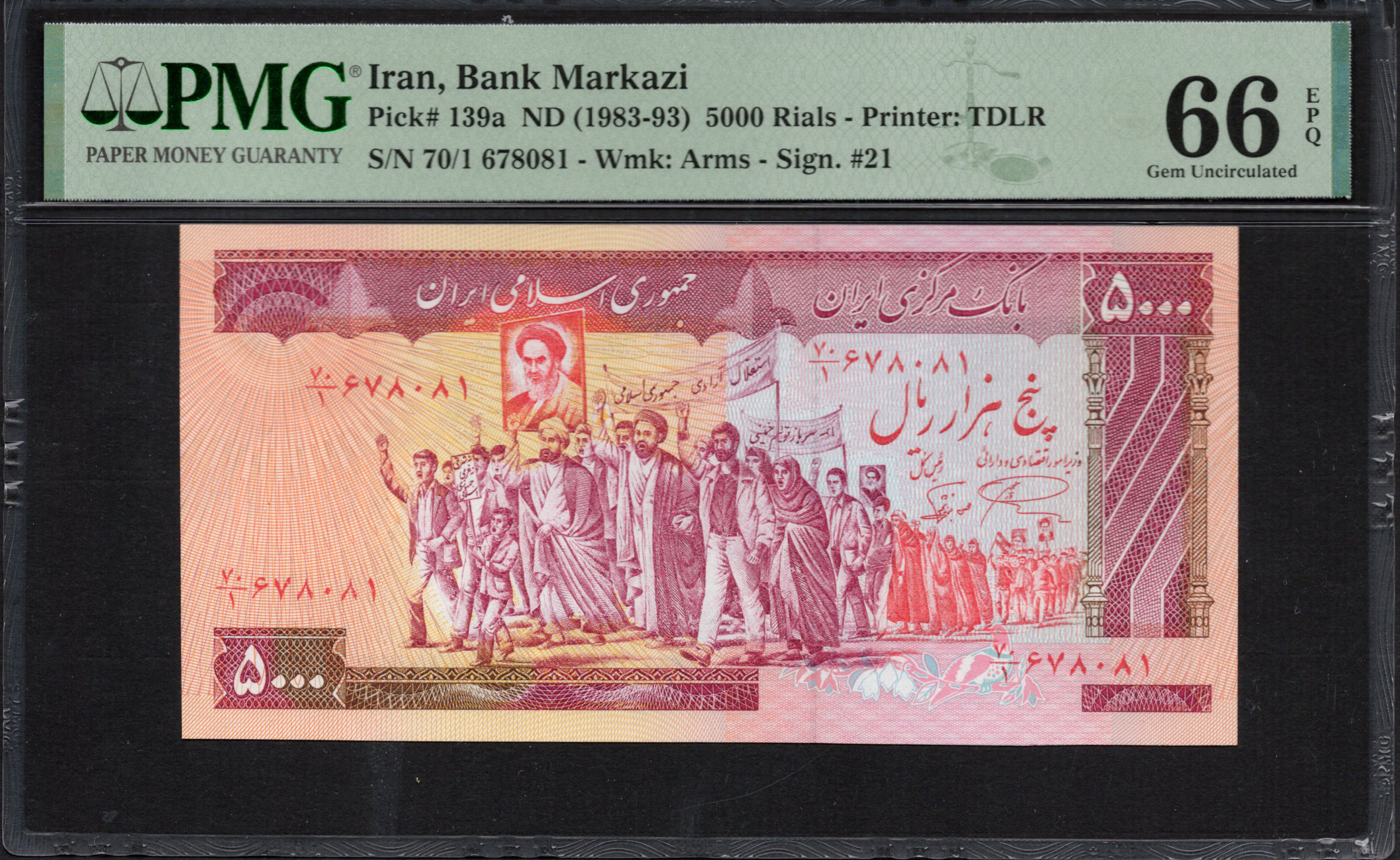 Iran - 5.000 Rials 1983 - Pick # 139a - PMG 66 EPQ