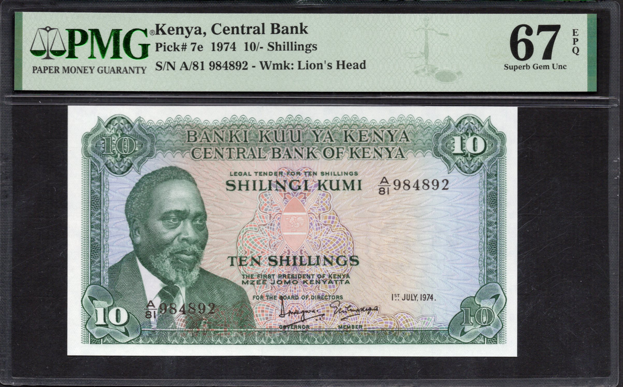 Kenya - 10 Shillings 1974 - Pick # 7e - PMG 67 EPQ