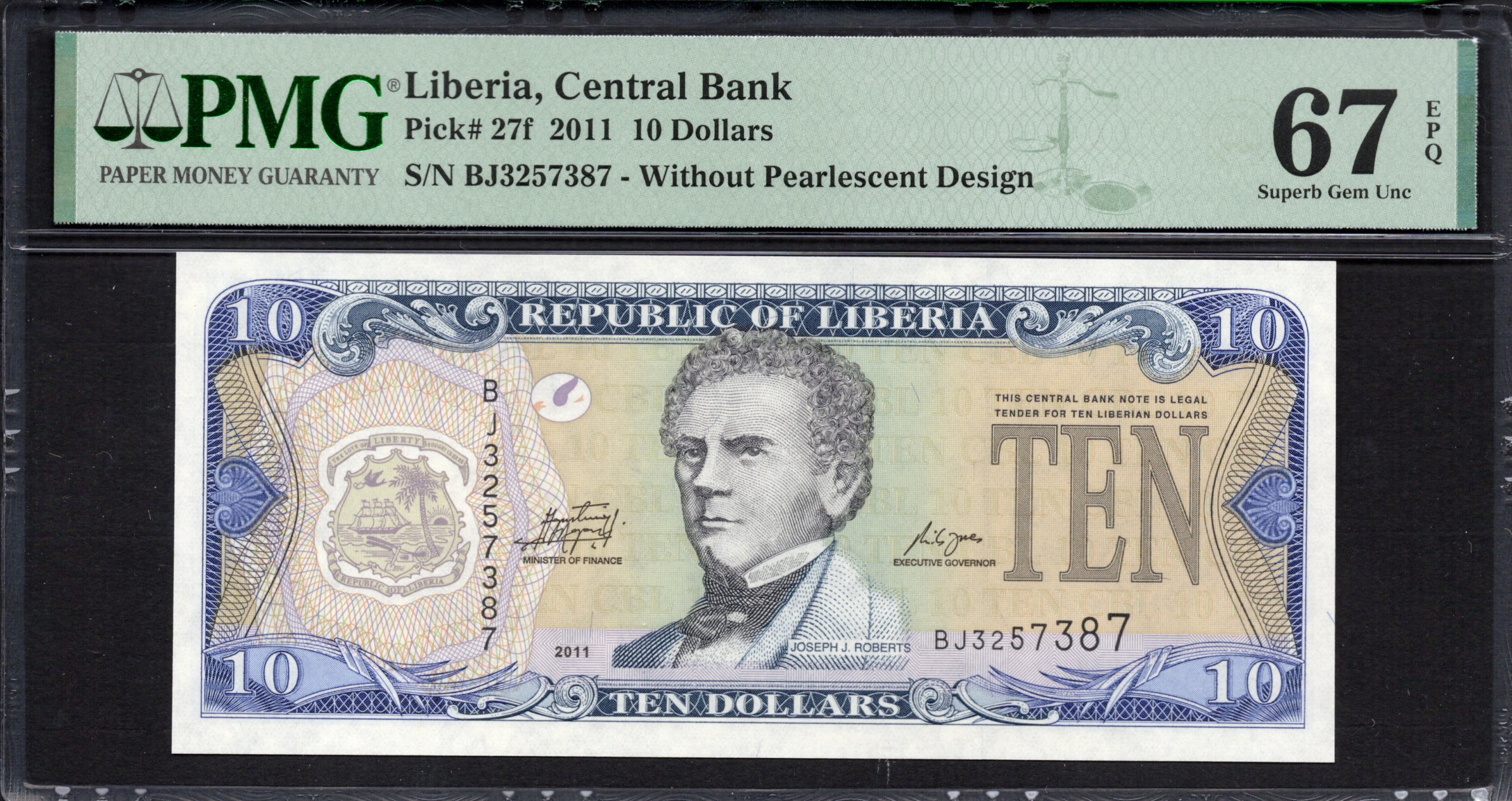 Liberia - 10 Dollars 2011 - Pick # 27f - PMG 67 EPQ