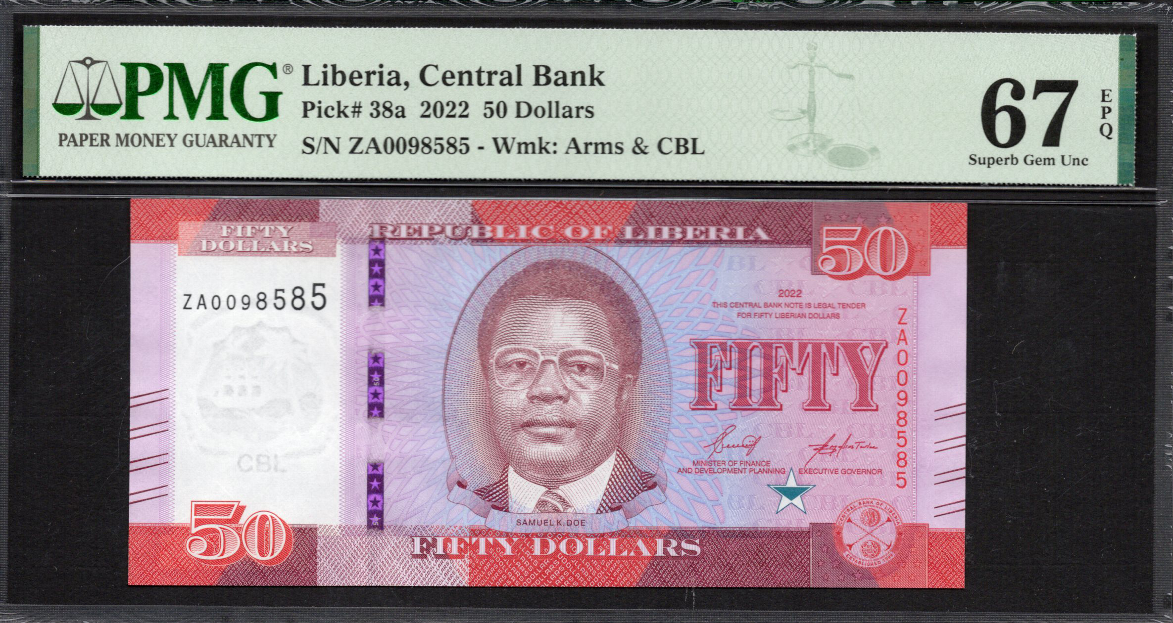 Liberia - 50 Dollars 2022 - Pick # 38a - PMG 67 EPQ