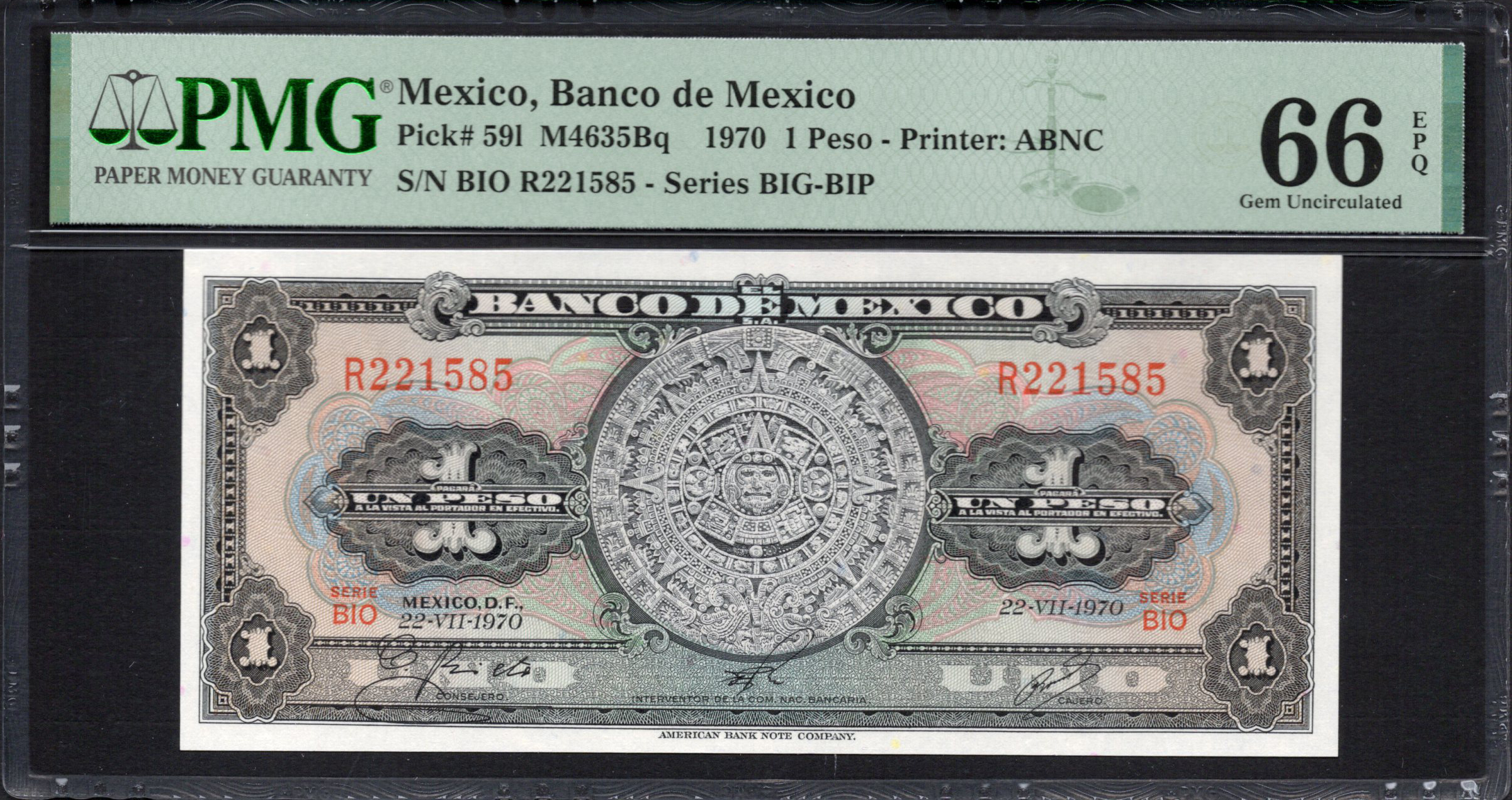 Mexico - 1 Peso 1970 - Pick # 59l - PMG 66 EPQ