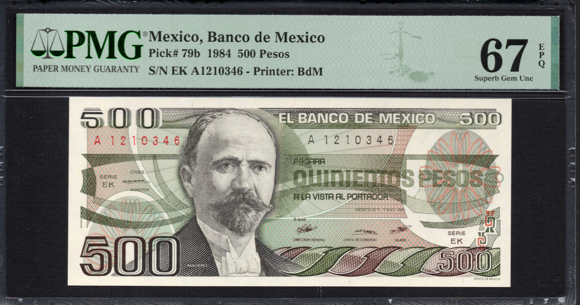 Mexico - 500 Pesos 1984 - Pick # 79b - PMG 67 EPQ