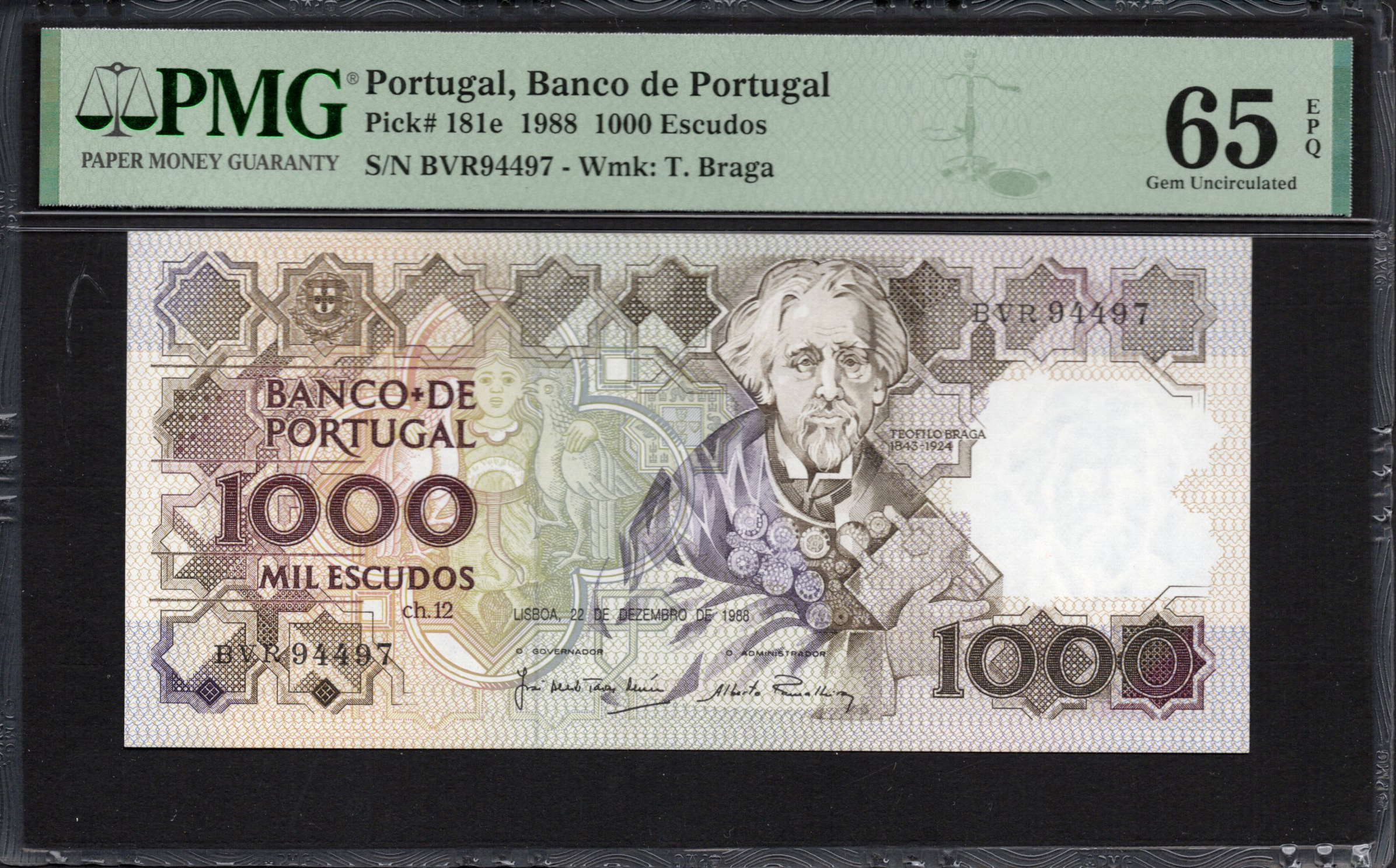 Portugal - 1000 Escudos 1988 - Pick # 181e - PMG 65 EPQ