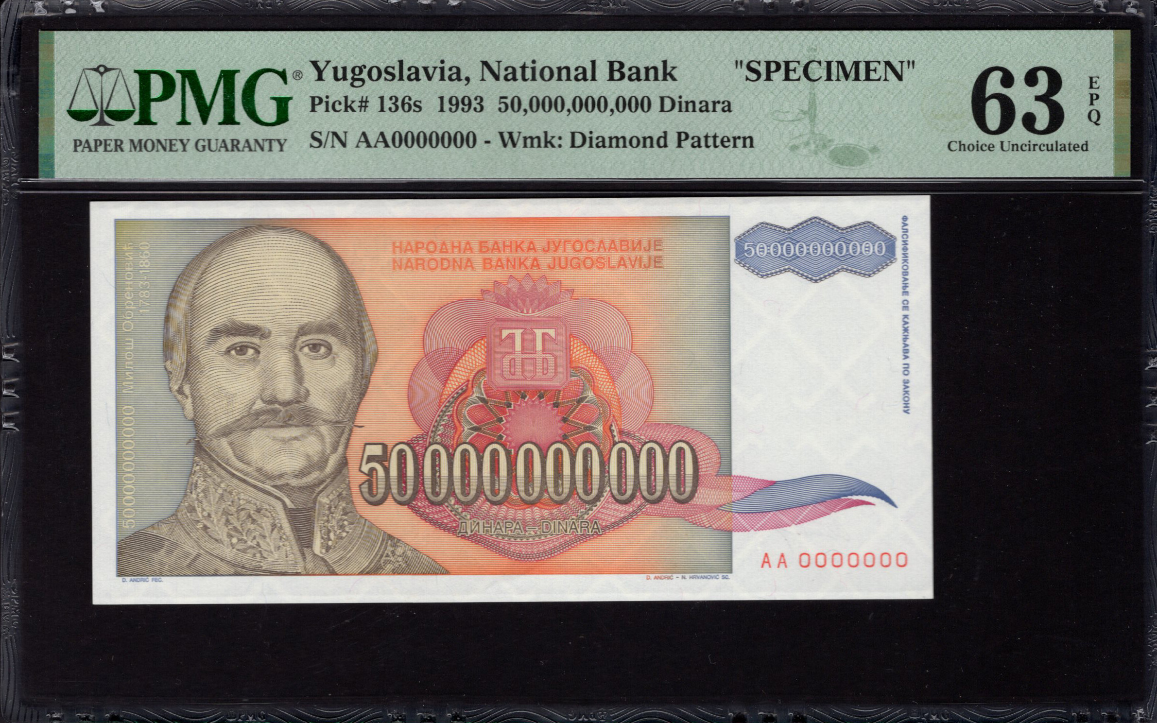 Yugoslavia - 50.000.000.000 Dinara 1993 - Pick # 136s - PMG 63 EPQ