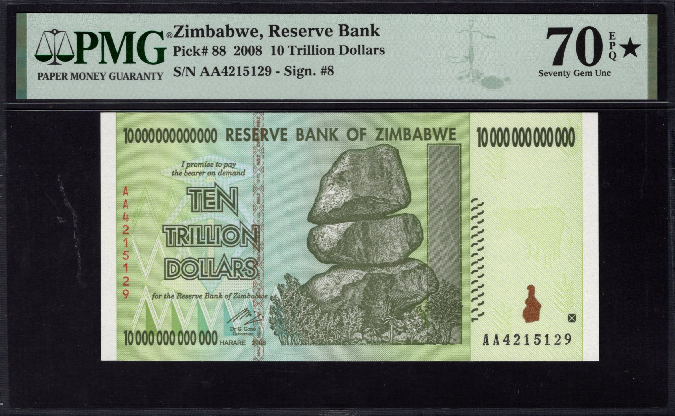 Zimbabwe - 10 Trillion 2008 - Pick # 88 - PMG 70 EPQ★