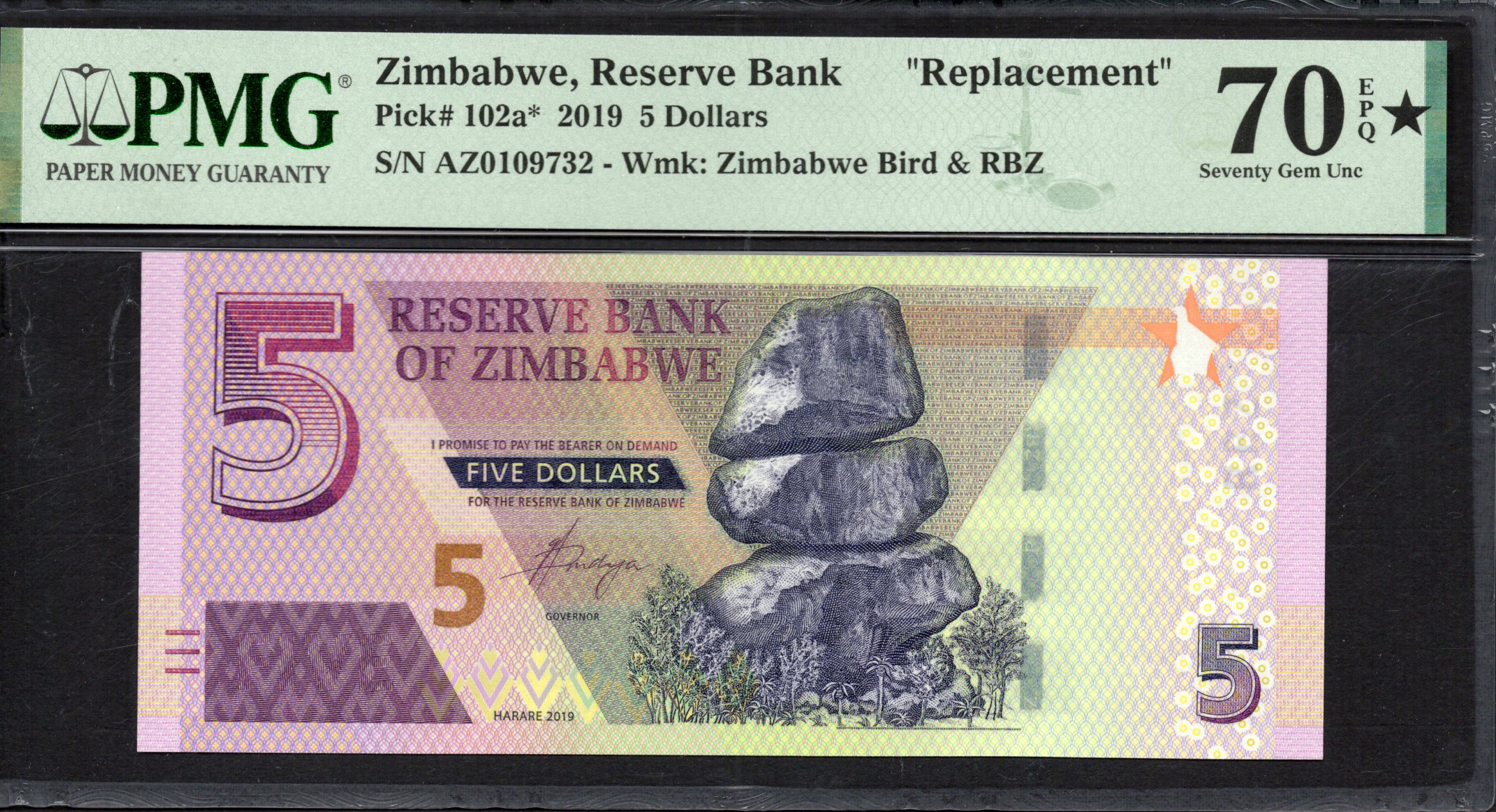 Zimbabwe - 5 Dollars 2019 - Pick # 102a* - PMG 70 EPQ★